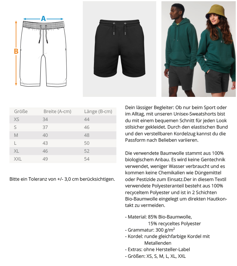 Unisex Organic Sweat Shorts ST/ST mit Stick für mehr Nachhaltigkeit